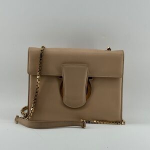 Salvatore Ferragamo Leather Shoulder Bag – Nude Beige with Gold Chain