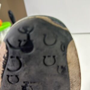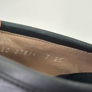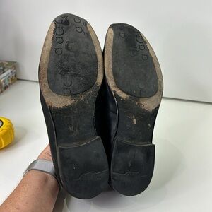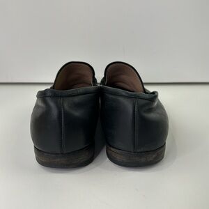 Gorgeous leather loafers that have been around. The back of the shoe at the heel has some wear as do the soles.