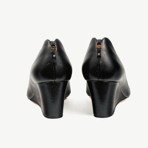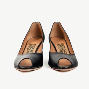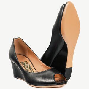 Salvatore Ferragamo Pearlette Black Peep-Toe Wedge Heels