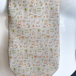 Salvatore Ferragamo Silk Beige Egyptian Hieroglyphics Men's Necktie.