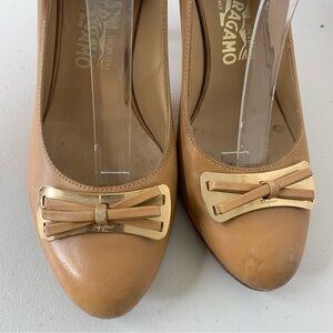 Salvatore Ferragamo Tan Brown Nude Bow Tie Front Party Pumps Heels Size 7