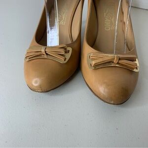 Salvatore Ferragamo Tan Brown Nude Bow Tie Front Party Pumps Heels Size 7 SHOES 018