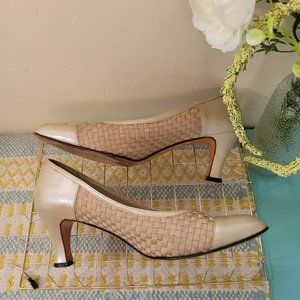 Salvatore Ferragamo Vintage Neutral Woven Shoe Heel