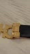 Chic black belt with a striking gold buckle. Perfect for adding elegance to any ensemble.