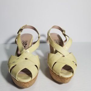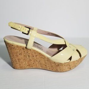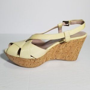 Salvatore Ferragamo Yellow Patent Leather Peep Toe Wedge Sandals