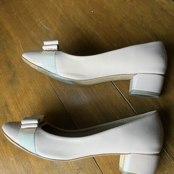 A modern twist on a classic shoe with iconic elements and timeless style. The perfect investment piece for your forever wardrobe, this Ferragamo pump is the height of feminine elegance. Made of naplak in a shade of Italian amaretti with a smooth finish. The rounded toe is graced with a tonal Vara bow and a metal buckle with a palladium finish. Simply chic.