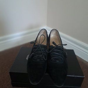 Elegant Ferragamo classic low heel shoes with tie detail. Comfortable. Fully leather lined with leather sole Fits US 7.5. GUC.