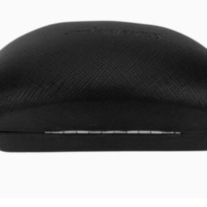 Salvatore Ferragamo large sunglass/eyeglass holder. Color: Black. Clamshell design, textured faux leather hard case. Black velvet feel interior. Case is in good pre-owned condition. There is a small scratch on the top (photo #4) and the interior has a small area where the finish of the velvet has been rubbed and slightly discoloured while cleaning (see photo # 5) Original cleaning cloth is not included. I have priced the case accordingly.