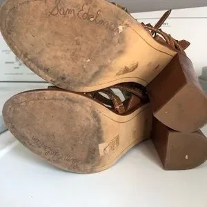 Size 7.5, overall these are in amazing condition with the exception of the inside of the straps, which has peeled away from the leather in some spots. Does not affect nor can you see while wearing these stunners❤️