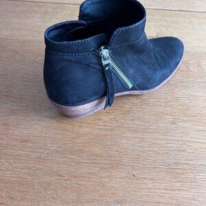 Elevate your wardrobe with these effortlessly stylish Sam Edelman black suede booties! Featuring a sleek almond/pointed toe and a subtle Western-inspired silhouette, these boots are the perfect mix of classic and edgy. The low stacked heel provides all-day comfort, while the side zipper adds a touch of detail and easy on/off wear.