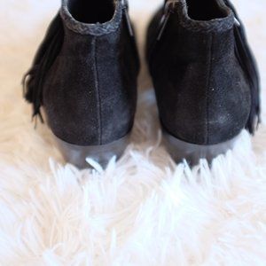 Sam Edelman Black Suede Fringe Ankle Boots Size 9