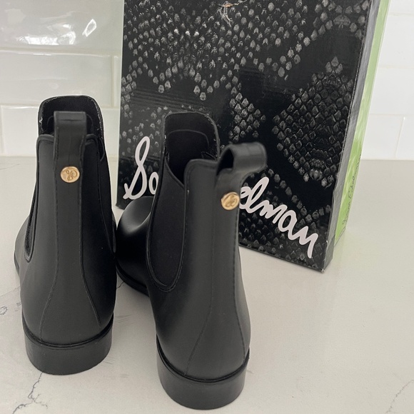 Black Sam Edelman Tinsley ankle boot - Rubber upper - perfect for wet weather.