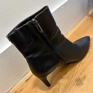 Black, Sam Edelman, Pointed toe, Kitten Heel Booties with zipper. Worn in but in decent condition.