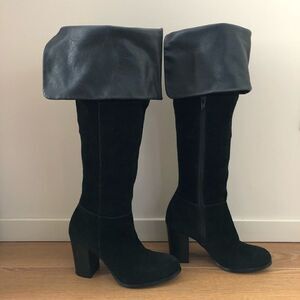 These boots are absolutely stunning!!! Black literally goes with EVERYTHING. These are definitely a 2 in one kinda boot ๐ค๐๐พ Wear them as over the knee style or Roll down the faux leather cuff for a shorter boot.