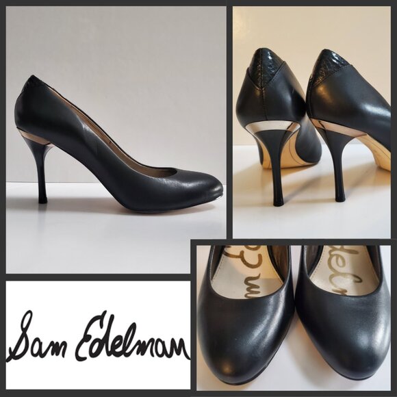 Sam Edelman Camdyn Women's Heels Classic Black Leather Rounded Toe Pumps Size 8
