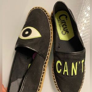 Sam Edelman Circus Eye Can’t Black Espadrilles size 6.5 Neon Green, eyeball