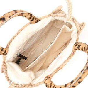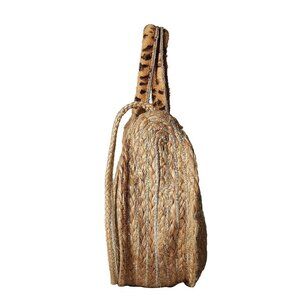 Made of jute with leather trim.