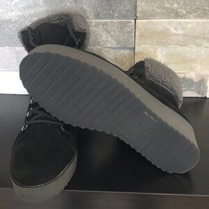 Plush faux shearling and faux fur provide exceptional warmth for this suede platform boot that's ready to hike the city terrain.