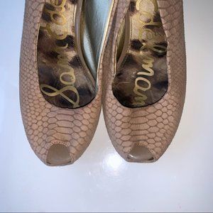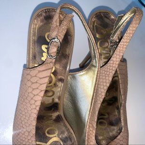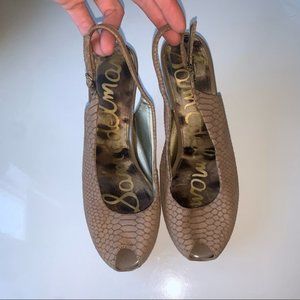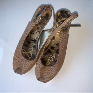Sam Edelman Heels Size 8 US Tan Brown Snake Print Peep-Toe Slingback Stiletto
