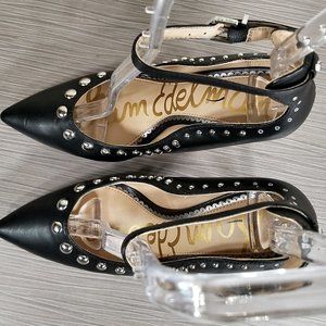 Sam Edelman Helen Ankle Strap Pump, Black Leather, Womens Size 5 M / 35