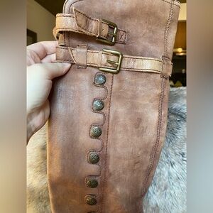 Sam Edelman Leather Pierce Whiskey Almond Toe Pull On Heel Knee Boot Size 6