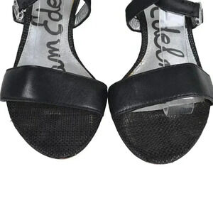 Sam Edelman Leather Wedge Sandal Heel Black Size 6