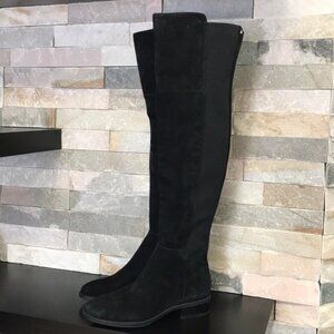 Instantly upgrade your downtown style with this sleek over-the-knee boot with a stretch-knit panel to perfect the fit.