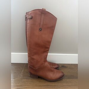Our classic leather riding boot, Penny, adds luxe equestrian chic to any outfit with its sleek, timeless silhouette. This universally-flattering style features a pull-on tab and back zipper closure for comfort and ease. Pair them with skinny jeans and a blazer now or bare legs and a tailored dress later for unstudied preppy elegance.