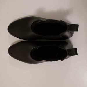 Gently worn waterproof rain booties by Sam Edelman. Chic black boots. Great condition! Light paint scuff on inner right shoe. Synthetic materials. Look polished and stay protected from the rain or muddy terrain!