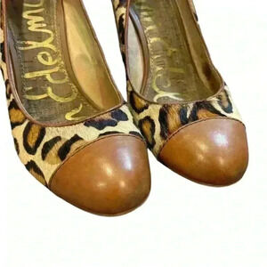 Sam Edelman Randall Pumps Heels Wedge Espadrille Cap Top Leopard Brown Womens 9