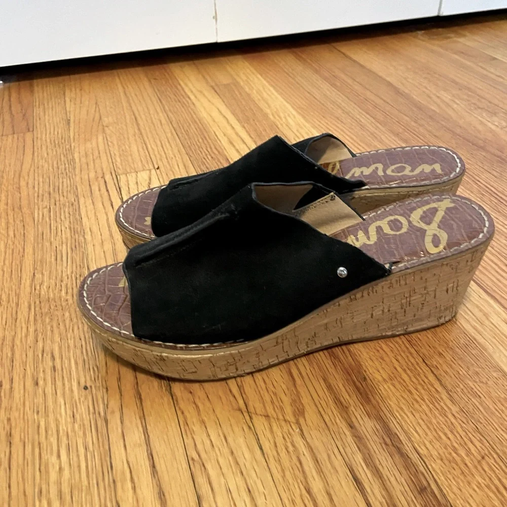 Cork platform wedge with a suede feel upper. Excellent, used condition.