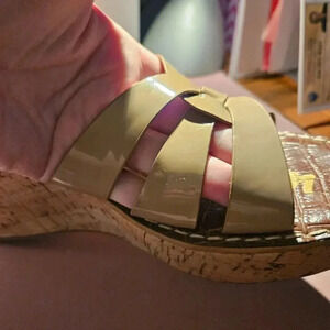 Sam Edelman | Raynere Patent Cork Wedge Nude Slip On Sandals