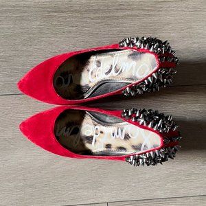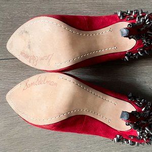 Sam Edelman "Roza" Jeweled/Studded Pumps in Ruby Red