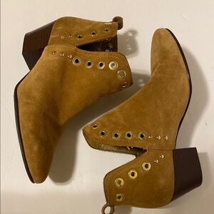Sam Edelman Tan Ankle Boots with Metallic Eyelets and Pointed Toe
