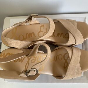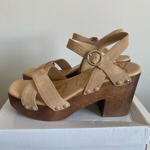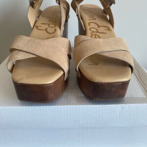 Step out in style with these chic tan platform sandals. Perfect for any occasion, these shoes offer both comfort and elegance.
