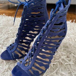 Excellent condition Women's heels by Sam Edelman. A strappy look and a suede material. Women's size 8.5. Lightly worn.