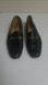 Step out in style with these elegant black loafers featuring a chic gold detail. Perfect for any occasion. There's some wear to it some scuffs.