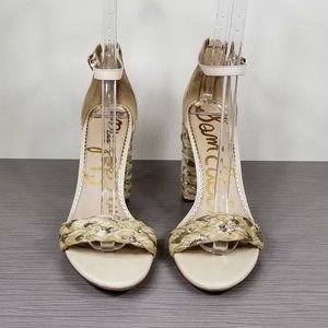 Sam Edelman Yoana Woven Trim Sandal, Ivory & Gold, Womens Size 9.5 M / 39.5
