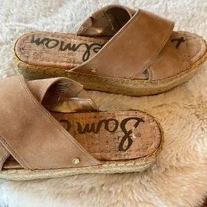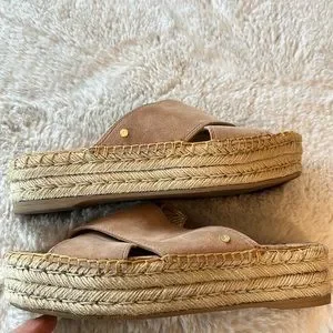 Lightly worn platform sandals. Suede feel to these leather uppers