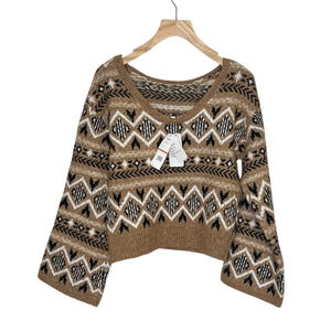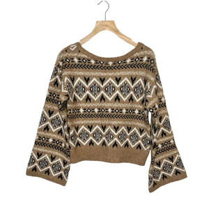 Wide drop-shoulder sleeves lend a cozy, relaxed feel to the Benton sweater from Sam Edelman, featuring a festive Fairisle pattern.