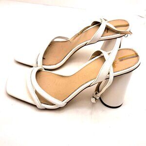 Delicate straps frame this alluring sky-high sandal that's party-ready with a