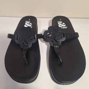 Sam & Libby, Alexandra Sandals, Black Thong Sandals, Medallion Sandals, Summer Shoes, Comfort Sandals, Boho Chic, Minimalist, Beach Wear, Size 8, NWOT, Faux Leather, Nappa PU, Casual Flat, Travel Shoes, Vacation Style, women's, vegan, resortwear, beach,