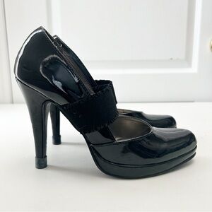 Sam & Libby Mary Jane Platform Heels Black Patent Faux Leather Size 8