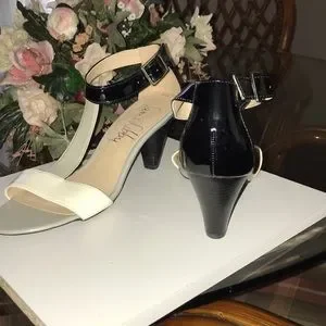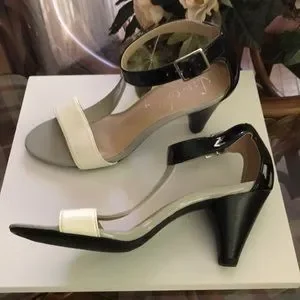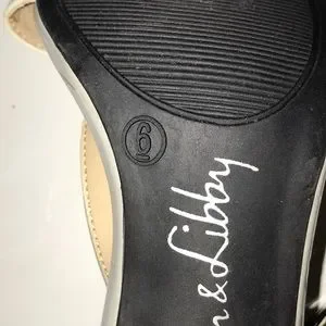 Sam & Libby black, white and grey t strap sandals. Size 6. Heel is 3 inches. New. Excellent condition. Smoke free and pet free home.