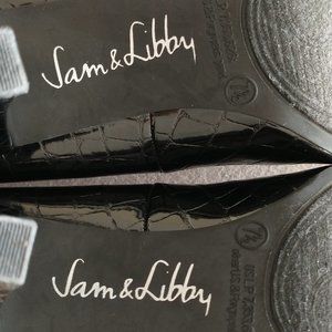 Sam & Libby size 7.5 black heels, excellent condition, worn handful of times indoors only. Heel height is approximately 3.5" (see 3rd pic). Hardly any signs of wear as shown in pics. These are great for the office or dinner out. I'm selling these as I don't wear heels this height any more.