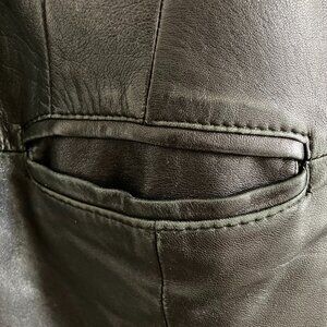 Could not find any information on this brand, but a high-quality European leather coat. Butter soft leather. Looks somewhat 1960s, but I would say it's perhaps 1970s or 1980s. Label says Euro size 46 but that may be misleading. I would call this a large, whereas the size would indicate an XL. Here are the measurements: pit-to-pit 19 inches (it does measure closer to 20 across the back), sleeve 21 1/2 shoulder to cuff/ 30 1/2 from center of collar to cuff, length 32 inches collar to hem, waist 17 inches across. It does have some (gentle) wear but still has a lot of life left (see photos). Please note this is not made by the company known as Sam (or SAM).