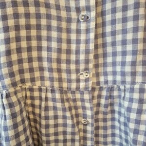 Samansa Mos2 linen hemp purple white check gingham dress 3/4 sleeve small