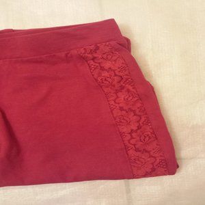 New. Pink pants with flower lace pattern detail on both side . Two pockets in the back. Threading details throughout. Size M[10-12]