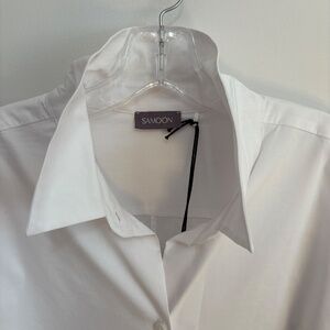 Samoon Classic White Blouse 76% Cotton 22%Polyester 2% Elastane