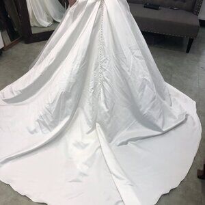 This gown is a shop sample & has been tried on (but never worn or left the store)! It is in excellent condition, with no marks or tears; & will require alterations for that perfect fit. It may benefit from a light cleaning/steam just to freshen it up from being tried, but nothing photo-grapheable or worthy of note. It may be missing designer tags but has shop tags and all appointed accompaniments (if it came with beads or straps...)